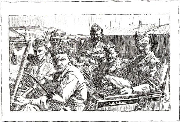 Left to right Lt. Jim Cox, driver Sgt Clifford Morris, Roy Popp, Master Sgt. Zeke Henderson